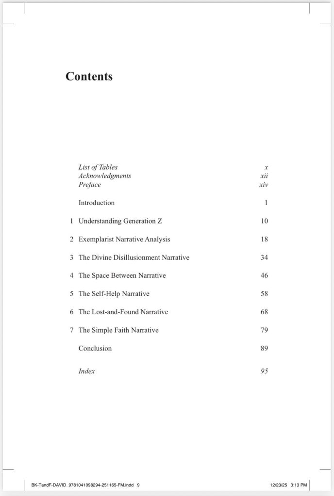 Routledge has sent through our final proofs for The Spiritual Narratives of Generation Z. And with the index now finished, my co-authors and I are taking a well-deserved break, enjoying the holiday season. This book has been a year and a half in the making — from the research design, data collection, and analysis, to the summits, presentations, and writing-up. A whirlwind of fun. And we can’t wait to share the book with you all next month when it hits the shelves.
